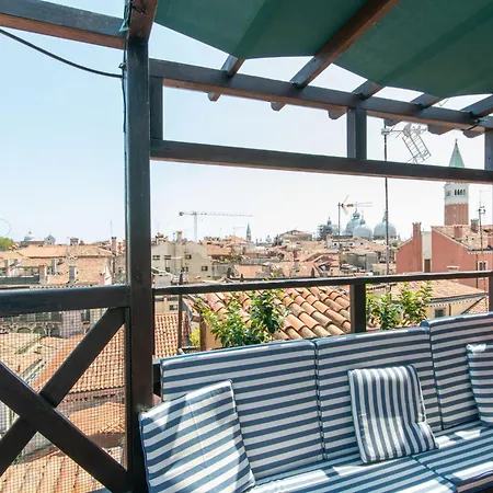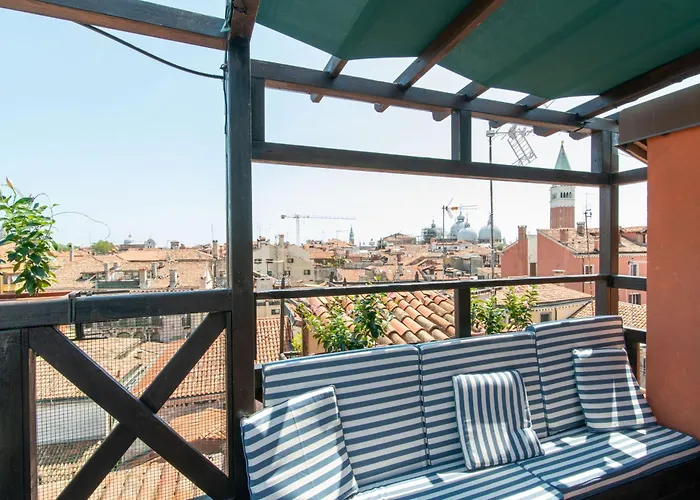 Das Apartment Penthouse With Rooftop Terrace And 360 Views Of Venice - Venice5Th ist eine großartige Unterkunft im Viertel Castello, nur 15 Minuten Fußweg vom Dogenpalast entfernt. 150 Meter von den Santi Giovanni e Paolo gelegen, bietet dieses 2-Zimmer-Apartment eine Terrasse, wo Gäste einen Ausblick auf die Berge genießen können.